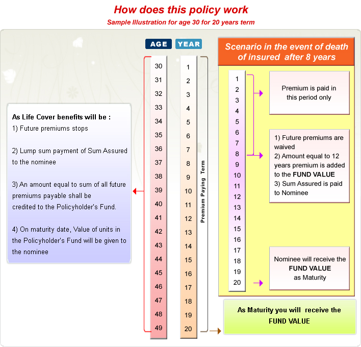 - On Maturity: The policyholder will get amount equal to the Fund value of the units.